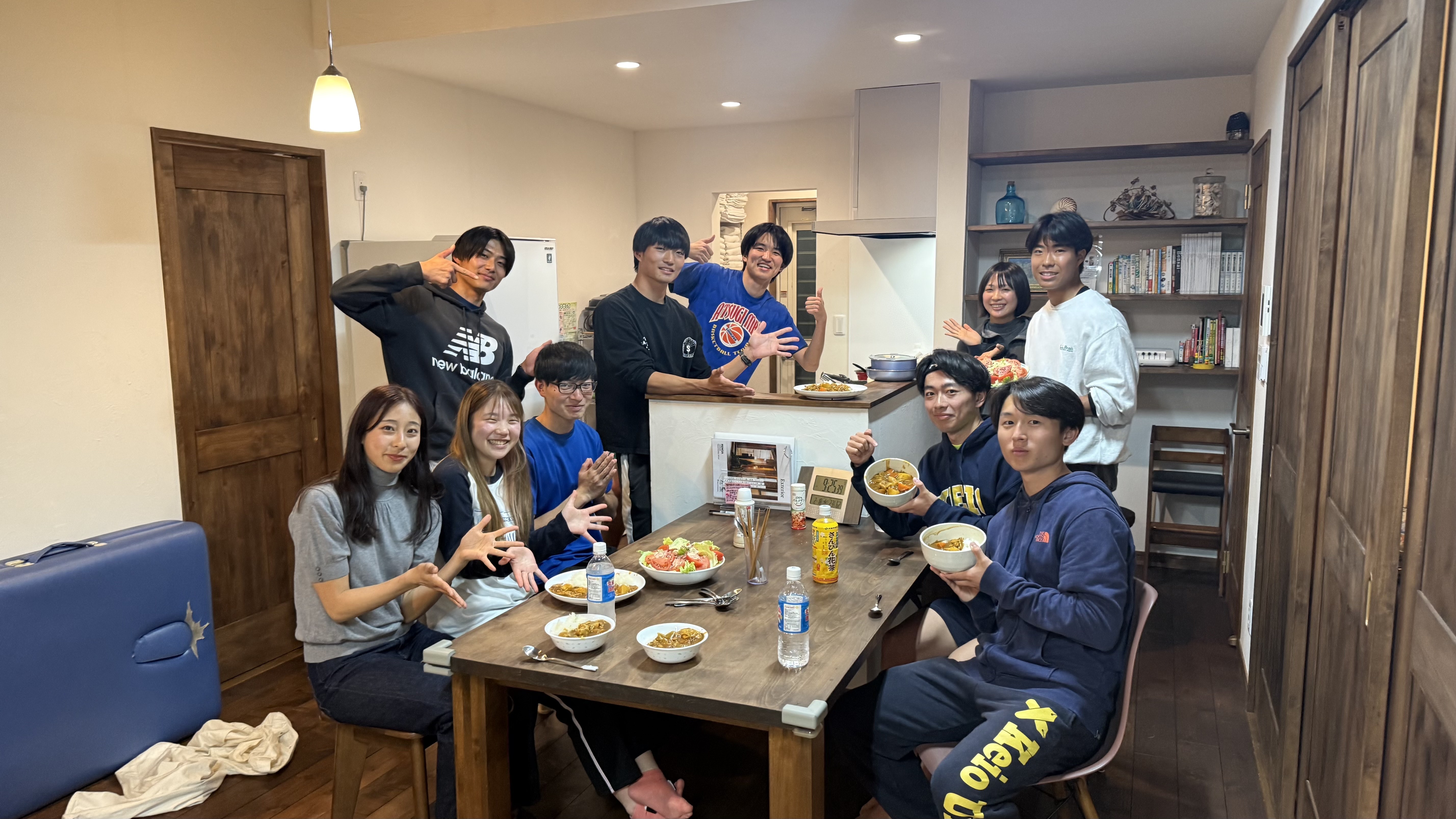カレーを自炊し、食卓を囲んでいる様子