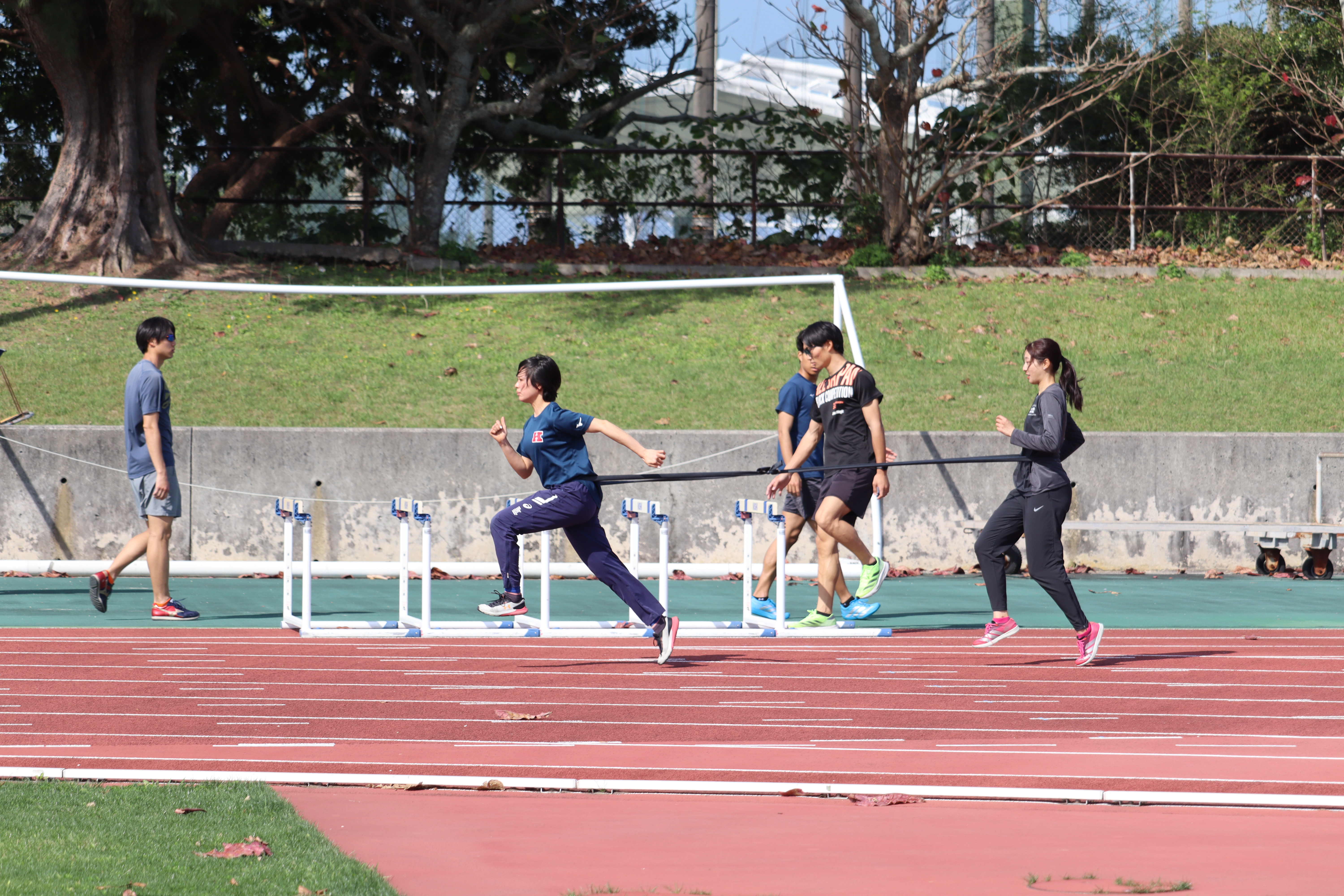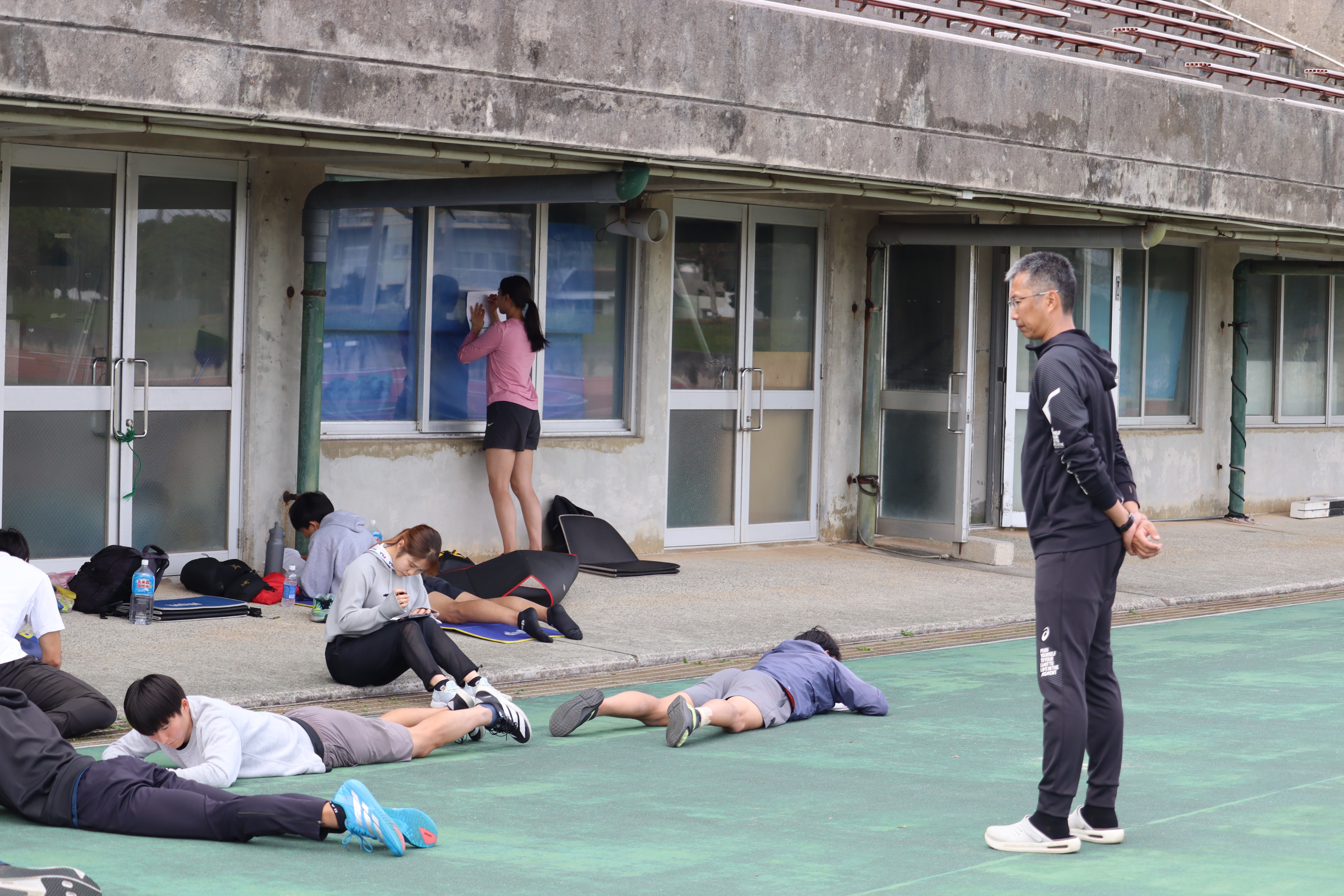 砂浜で得た感覚をトラックでも再現することを目的に、競技場で練習を行いました。佐藤先生のご指導のもと、各自の課題に合わせて跳躍・走り・ウエイトに取り組みました。午前の内容を意識しながら動作をつなげることで、技術面の整理と実践への落とし込みを進めることができました。