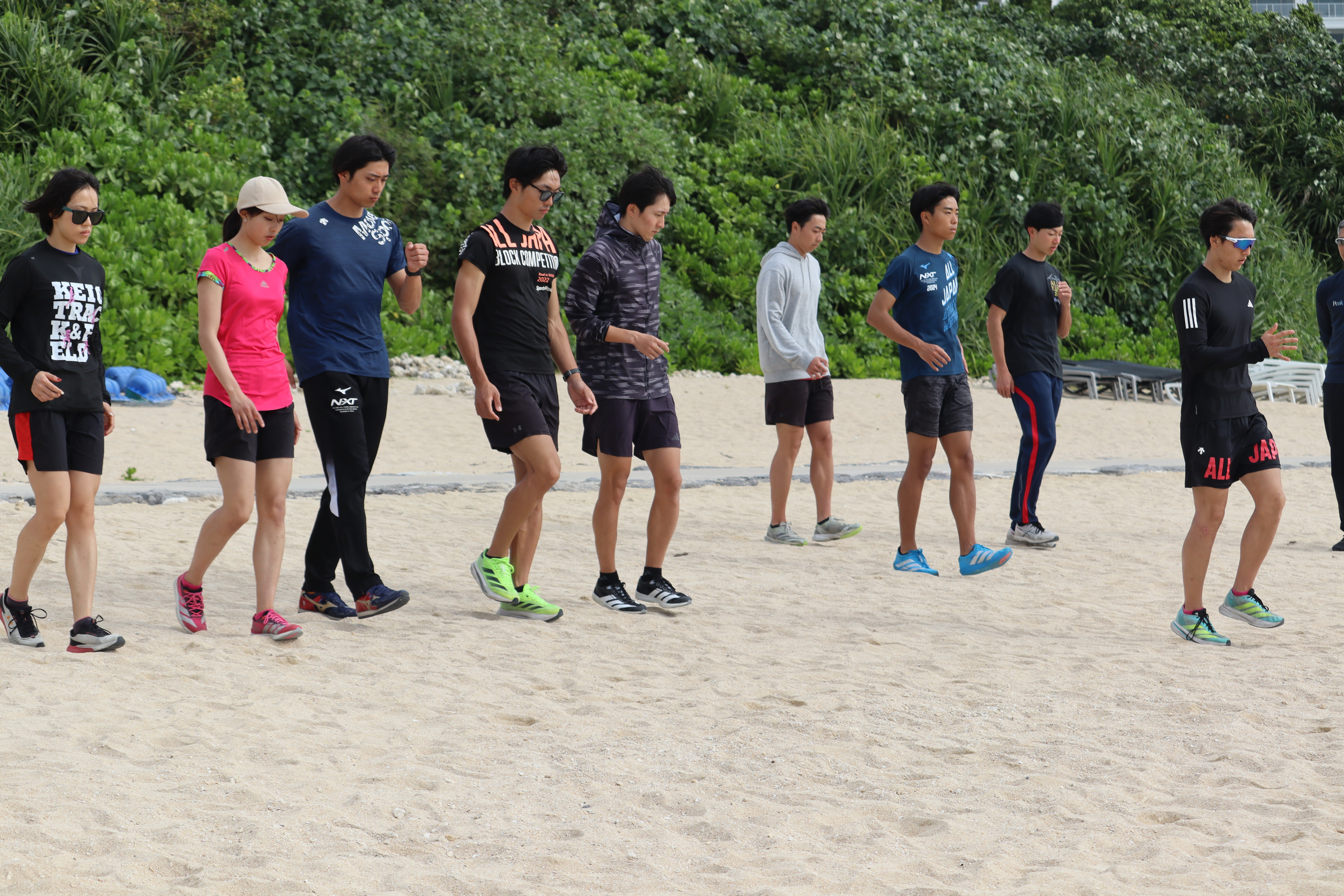 佐藤先生のご指導のもと砂浜練習を行いました。不安定な足場の中で、走りの姿勢や出力のタイミングを意識しながら、感覚を研ぎ澄ませて取り組むことができました。普段のトラックとは異なる環境のため、体の使い方を見直す良い機会となりました。